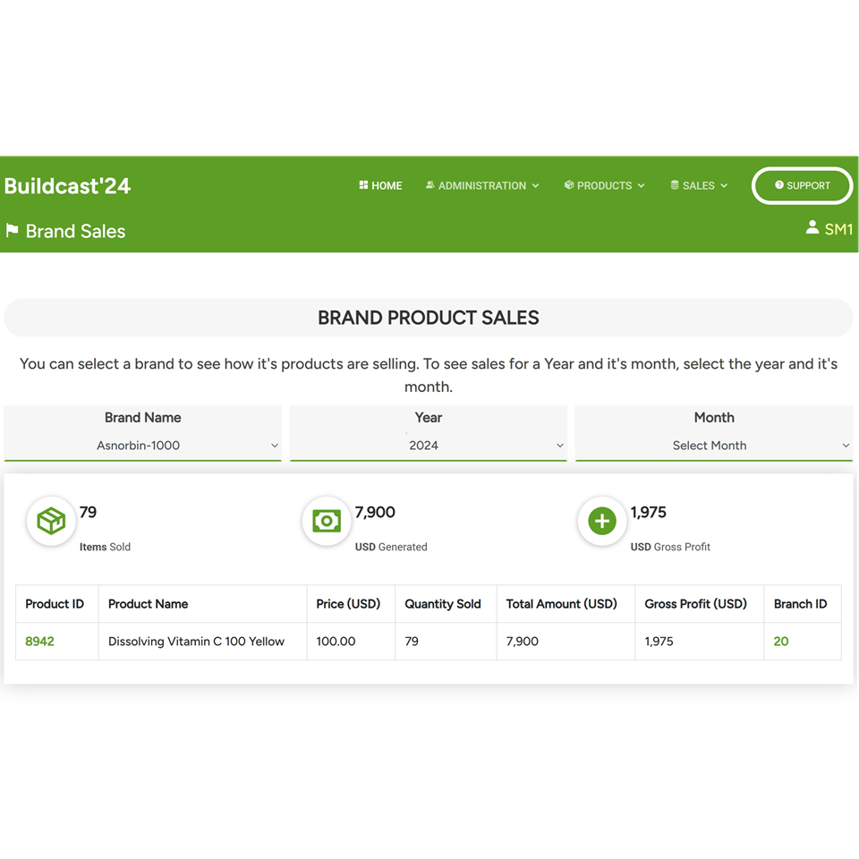 This feature allows you to see sales trends concerning your products and branches. You can: