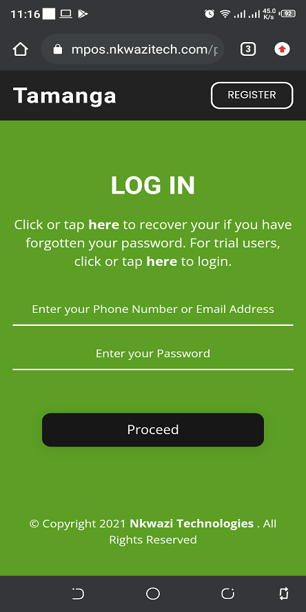 For registration, we recommend you use your business Email addresses and business phone numbers. You should not use your personal emails or personal phone numbers for registration. We will not be held responsible for any damages that will occur as a result of using personal phone numbers or Emails to register with Tamanga POS