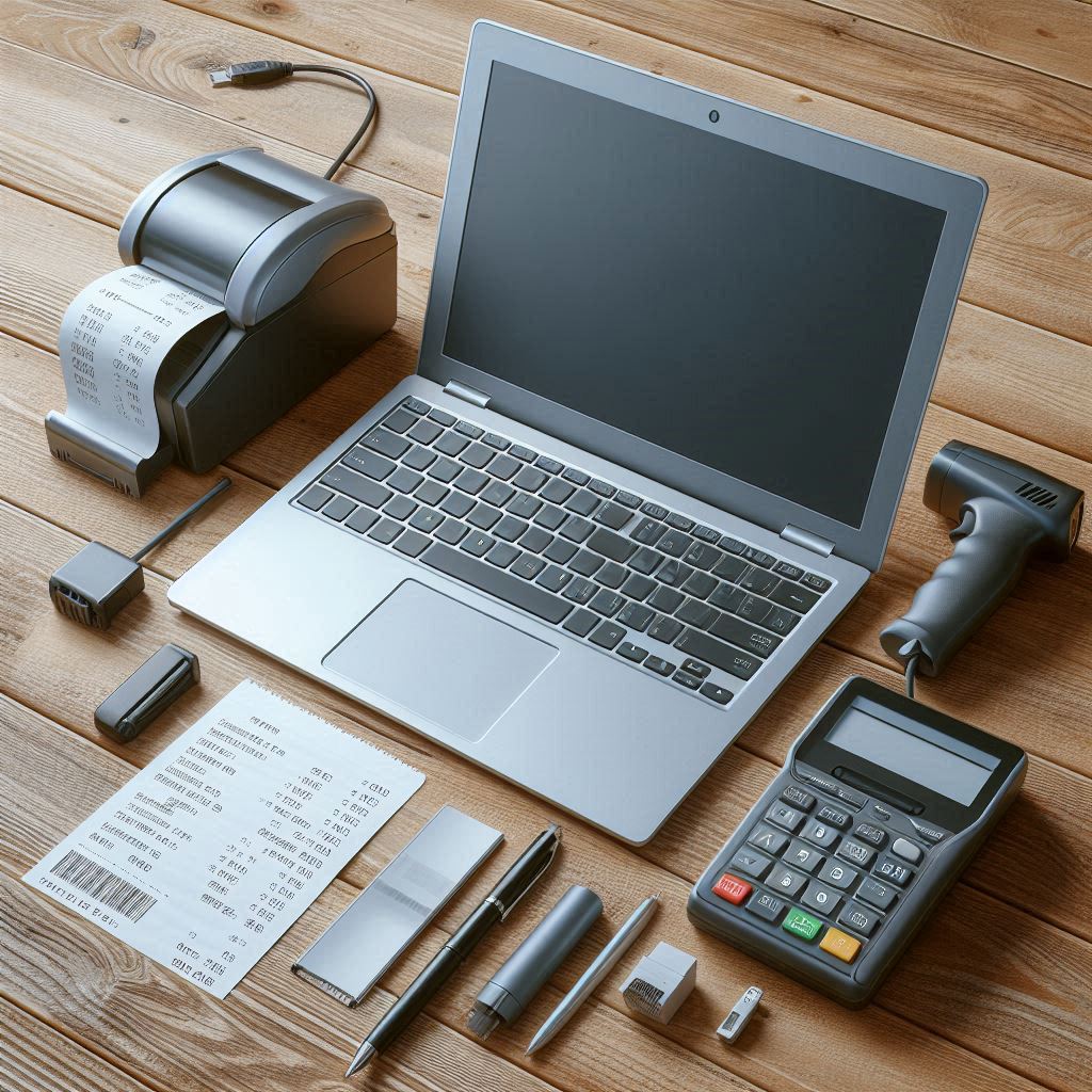 You need any device with a web browser. For printing of Invoices and Receipts, you will need a printer